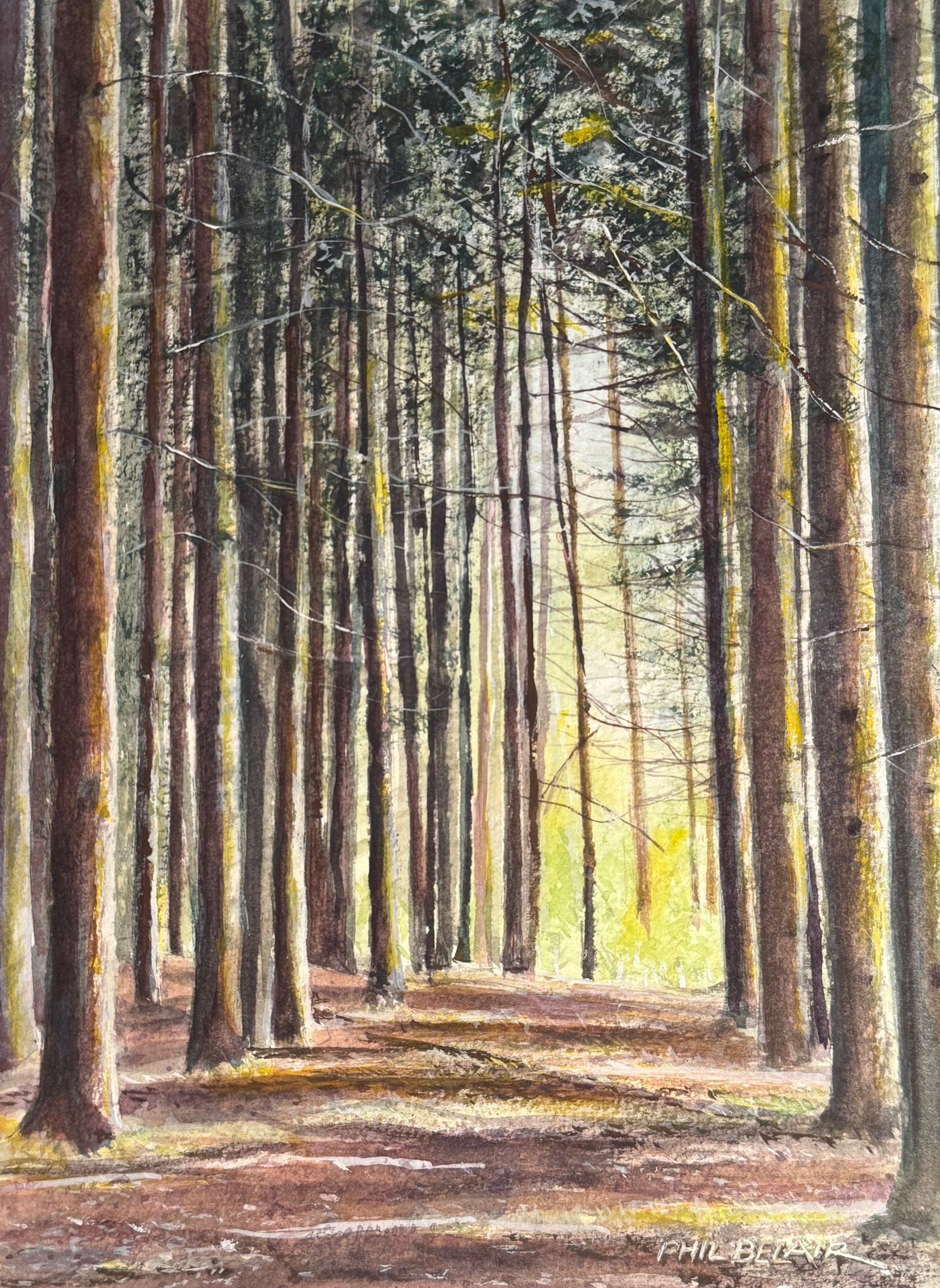 An original 7.5 by 10 watercolor painting on Arches Hot Press archival paper. Presented in an 11 x 14 inch white mat. Price includes shipping costs.